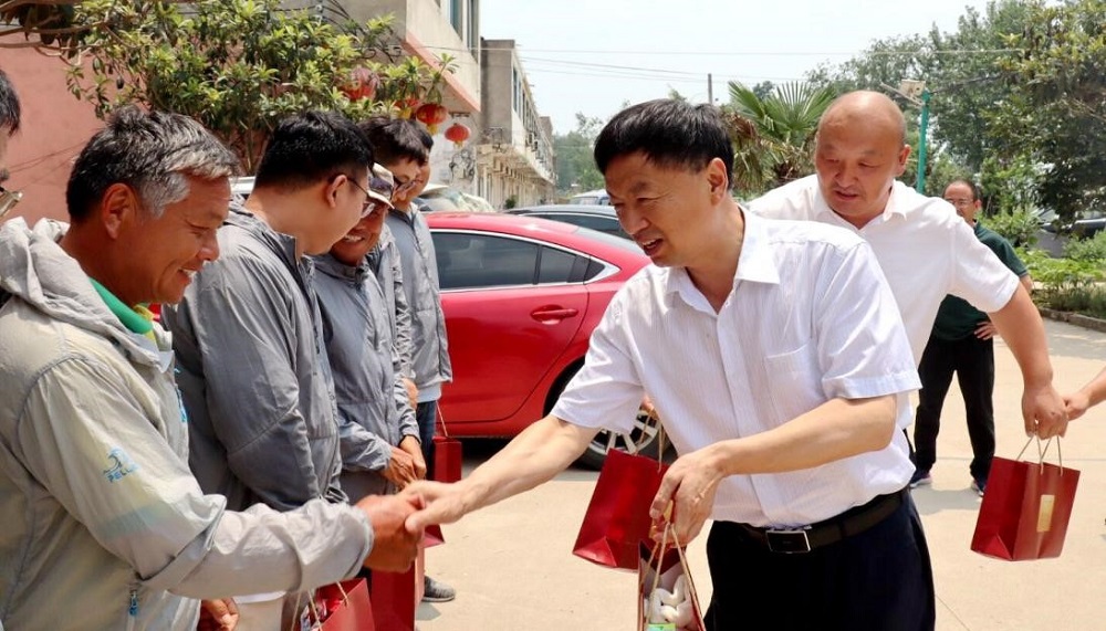 倪志愿先后来到基地员工宿舍、田间地头,向一线员工们表达了亲切的问候,对他们不畏高温、忠于职守、勤勤恳恳的工作态度表示敬意,并将防暑降温物品、安全生产手册送到管理人员手中,为他们加油鼓劲,感谢他们为苏垦农发高质量发展作出的积极贡献;叮嘱大家要合理休息,农业生产作业时一定要注意身体健康,避开午后高温天气,防止中暑。