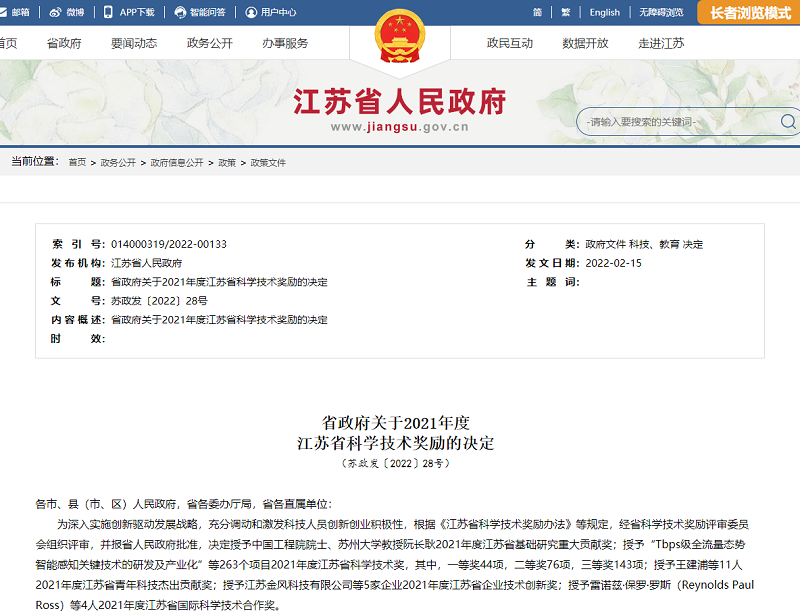 苏垦农发荣获2021年度江苏省科学技术二等奖