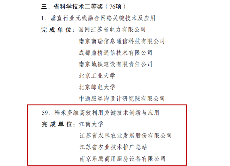 • 近日,江苏省人民政府发布《省政府关于2021年度江苏省科学技术奖励的决定》(苏政发〔2022〕28号),江苏省农垦农业发展股份有限公司与江南大学等单位合作研发的“稻米多维高效利用关键技术创新与应用”成果荣获二等奖,这是苏垦农发公司组建以来首次获得该奖励,彰显公司在农产品精深加工领域内突出的研发能力和创新潜质。