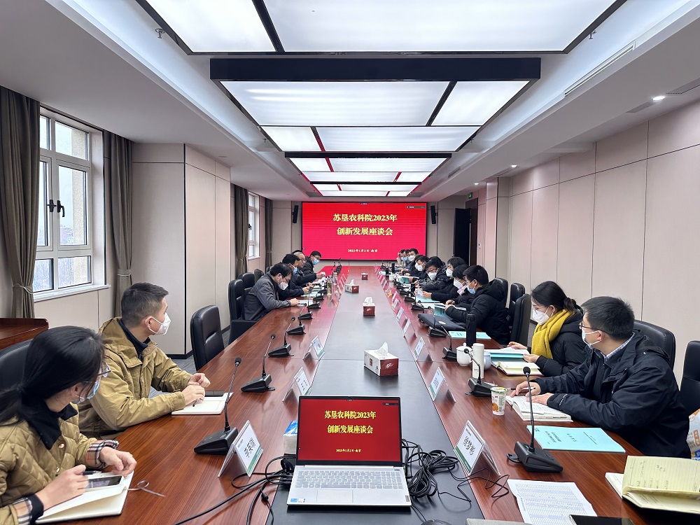 •        2023年1月2日下午,苏垦农科院2023年创新发展座谈会在农科院总部召开。苏垦农科院领导班子成员,总部及下属单位副职以上成员参加本次座谈会,会议由农科院院长王俊仁主持。