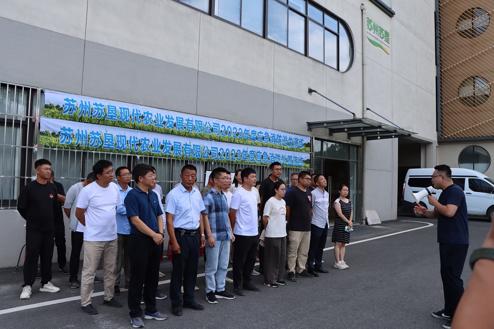 •        为筑牢消防安全“防火墙”,提高职工消防安全防范意识,牢固树立“全员消防、生命至上”的安全理念,7月26日,苏州苏垦组织全体职工开展了安全知识培训和应急处置演练活动。
