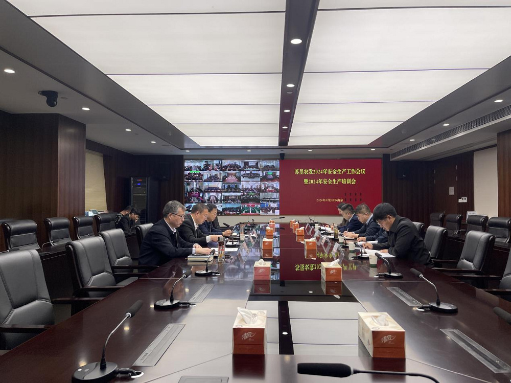 •        3月26日下午14时30分,苏垦农发召开2024年安全生产工作会议暨2024年安全生产培训会,会议以视频会议方式召开,主会场设在苏垦大厦1208会议室,各分、子公司和农科院设分会场,公司安委会成员,分、子公司和农科院安委会(安全生产领导小组)成员、安全员参加了本次会议。会议由公司总裁、安委会主任丁涛主持。