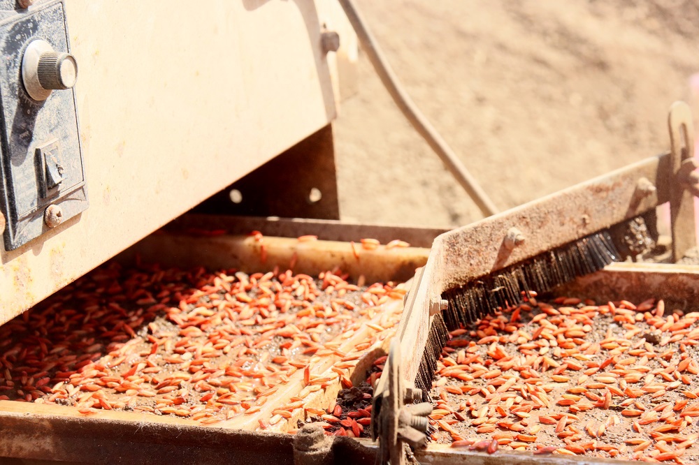 •        培育壮秧是提高水稻成穗率、夺取水稻高产的主要措施之一。眼下正值水稻育秧“关键时期”,为充分保障秋粮丰产丰收,苏垦农发东辛分公司坚持早谋划、早部署,积极推广微喷灌育秧,有效提高水稻秧苗素质和种植产量,按下农业现代化“加速键”。