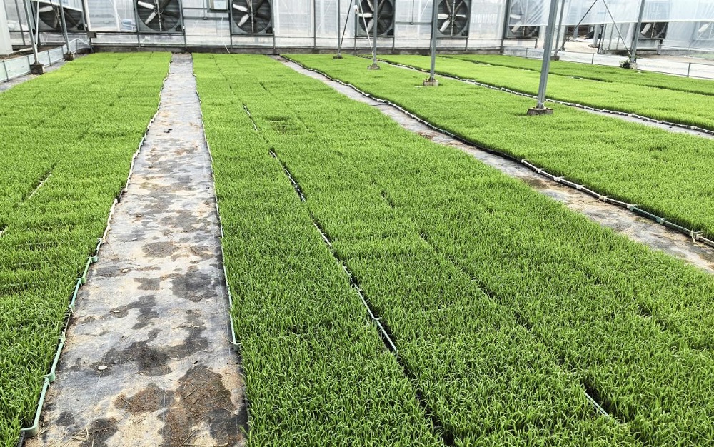 在高标准粮油生产基地的育秧工厂内,全自动播种流水线开足马力,工人们装土、洒水、播种、覆土......一气呵成。一个个标准化秧盘被整齐码放成垛,随后送入恒温育秧大棚进行暗化催芽。目前,秧苗出苗率达99%,长势喜人,预计4月上旬便可移栽大田。今年头季目标产量700公斤,全年亩产瞄准1000公斤,力争打造苏州地区再生稻高产新标杆。